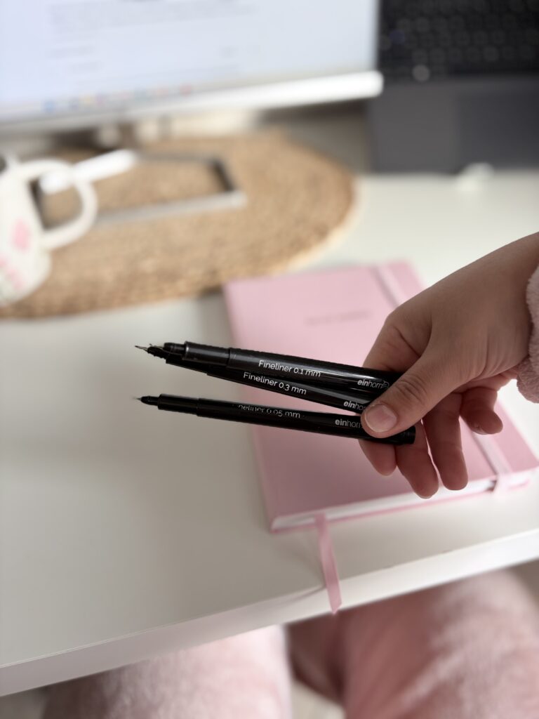 Microfibras graduadas: Mis favoritas son las de punta fina (0.3 o 0.5). Permiten una escritura delicada y son ideales para trazar los sĂmbolos del diccionario BuJo.